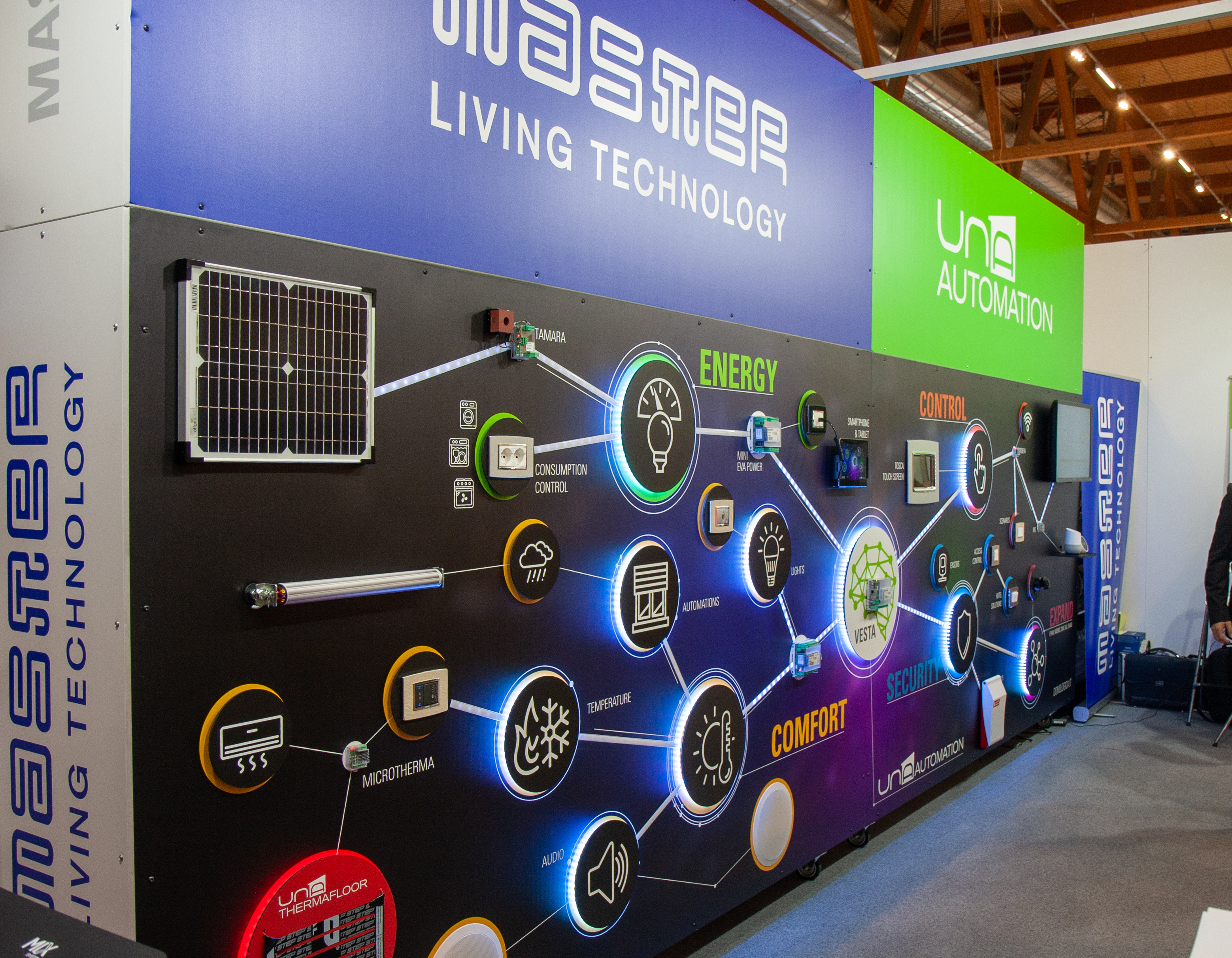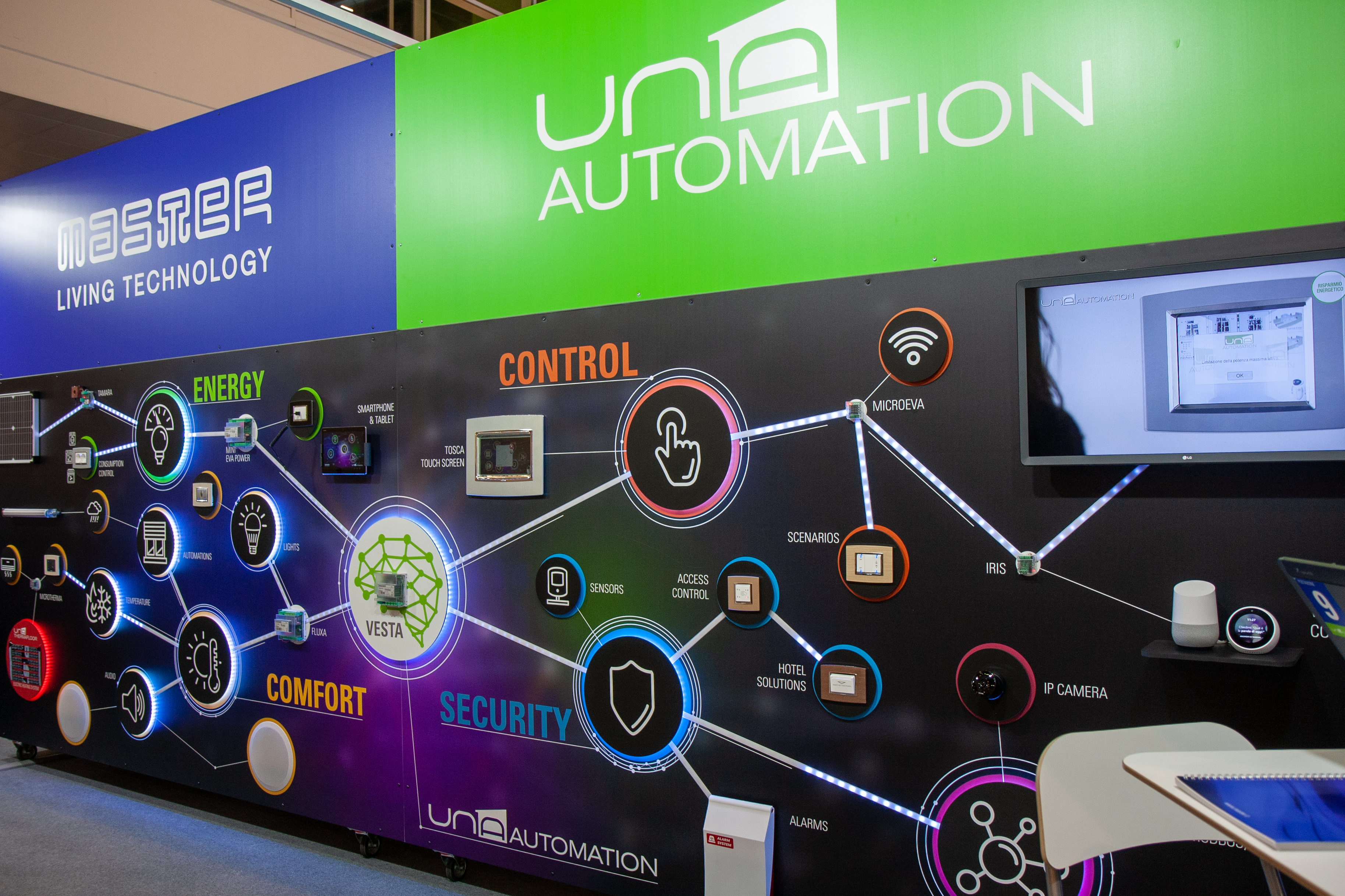 Advertencia: El uso y aplicación de toda la funcionalidad de control está sujeto a la presencia del sistema UNA Automation de Master, con tarjeta Vesta y conectado a la misma red WiFi local y/o Internet.