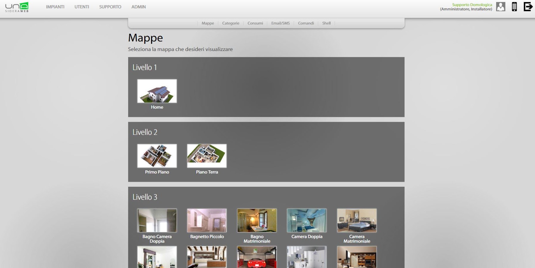 SideraHome es la interfaz de usuario que proporciona un acceso rápido al sistema UNA desde el interior del edificio. SideraWeb es el portal web que proporciona acceso al sistema desde fuera del hogar, a través de Internet.